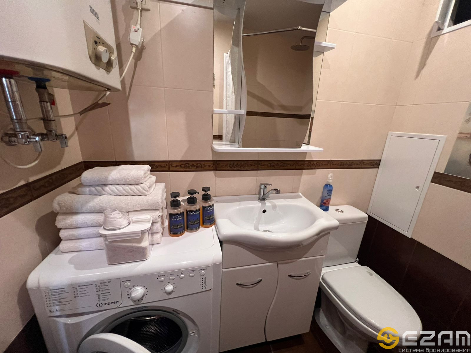 -Санузел оборудован душевой , стиральной машиной и феном.
