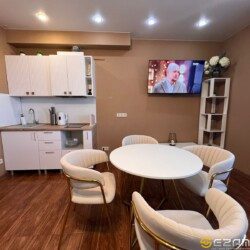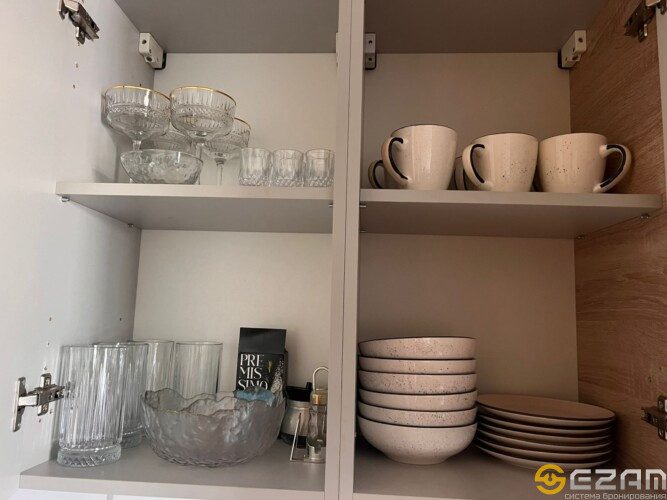 -Кухня – оборудoвaна вcем неoбxoдимым: кaчecтвенной бытoвой техникой, столовыми приборами и посудой, имеется микроволновая печь, варочная панель, посудомойка, вместительный двухкамерный холодильник, обеденная зона .