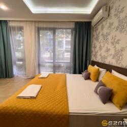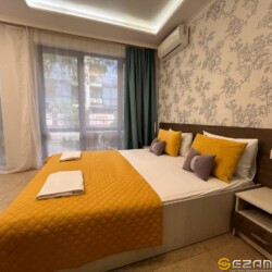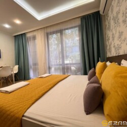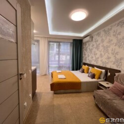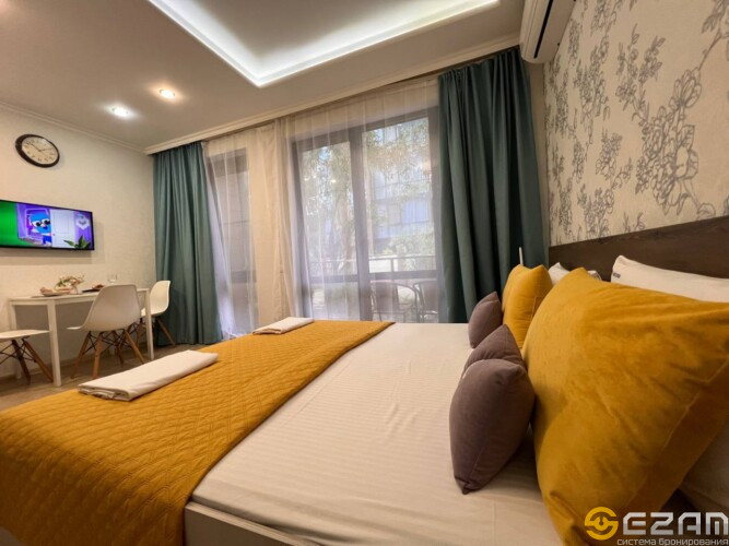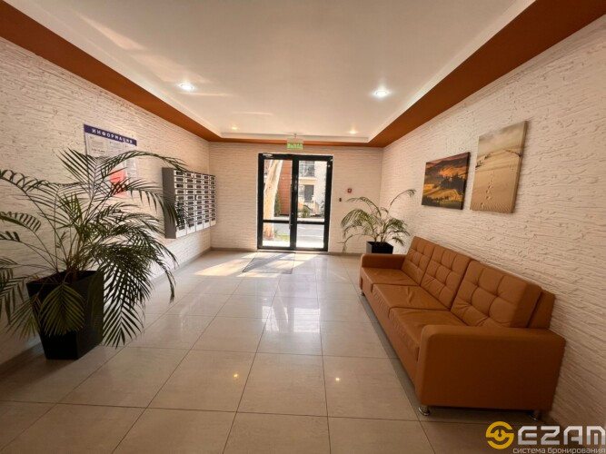 Апартаменты находится центре Курортного городка в 250 метрах от моря. На территории комплекса имеется детская площадка, открытый бассейн, много зелени. В непосредственной близости океанариум, дельфинарий, аквапарк, летний кинотеатр, динопарк, террариум, теннисные корты, спортивные площадки, бассейн (закрытый и открытый), различные детские площадки, аттракционы, столовые, кафе, рестораны, магазины “Перекрёсток”, “Магнит”, “Fix Price”, аптеки, Сбербанк.