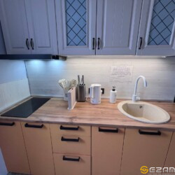 Имеется уютный кухонный гарнитур для готовки со всей необходимой посудой.